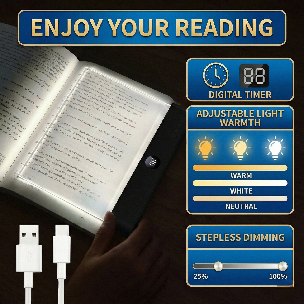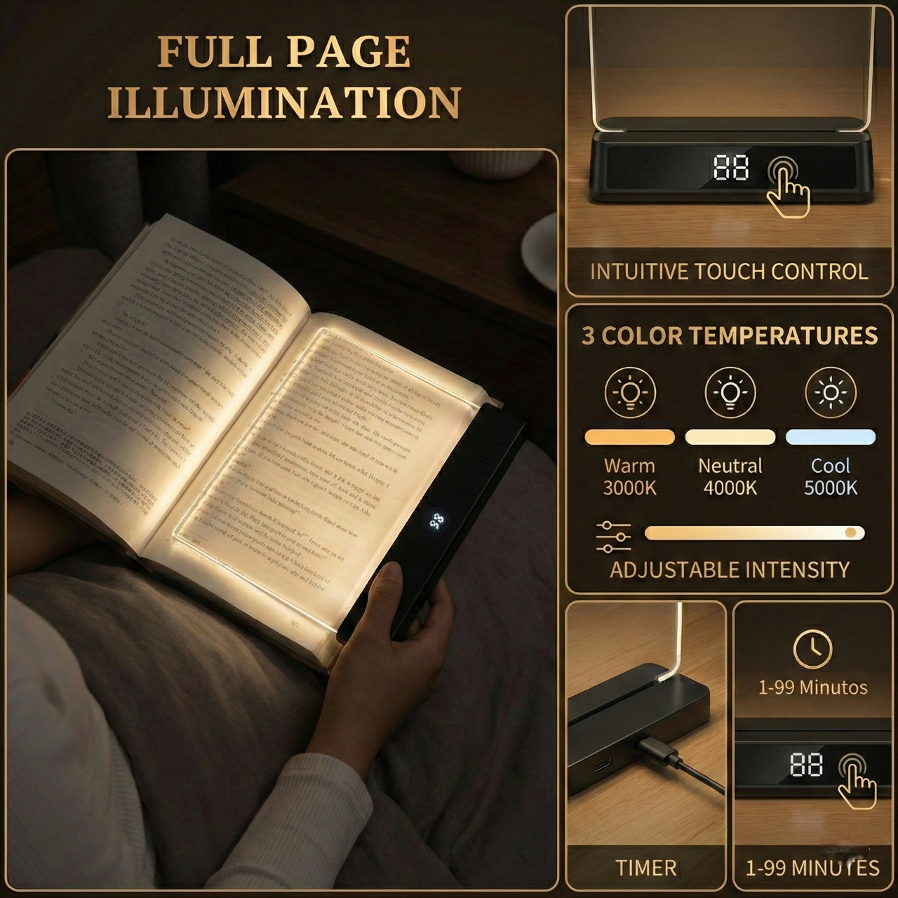 Olvídate de las lámparas que iluminan toda la habitación. Gracias a nuestro Panel de Luz Plana Anti-Dispersión, la luz se queda exactamente donde debe estar: en tu página. Tu pareja podrá dormir profundamente a tu lado mientras tú devoras ese último capítulo.